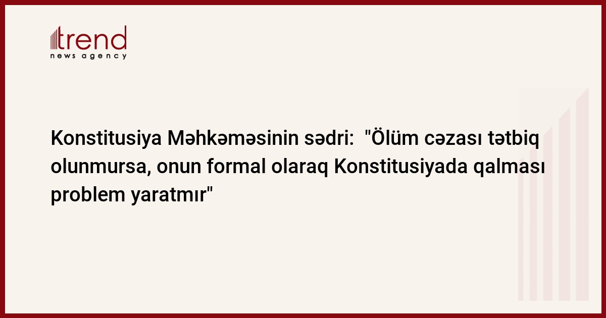 Bunu Konstitusiya Məhkəməsinin sədri Fərhad Abdullayev cümə axşamı Trend ə açıqlamasında, Konstitusiyanın 27-ci maddəsi (yaşamaq hüququ) ilə ölüm cəzasının ləğvini nəzərdə tutan 10 fevral 1998-ci il qanunu arasındakı ziddiyyəti şərh edərkən bildirib.