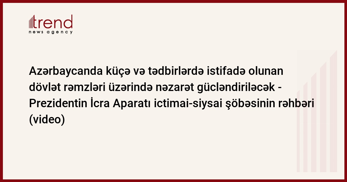 Azərbaycan, Bakı / Trend , müxbir K.Ramazanova/ Küçələrdə və tədbirlərdə istifadə olunan dövlət rəmzləri üzərində dövlət nəzarəti gücləndiriləcək. Bu barədə çərşənbə axşamı Prezidentin İcra Aparatı ictimai-siysai şöbəsinin rəhbəri Əli Həsənov bildirib.