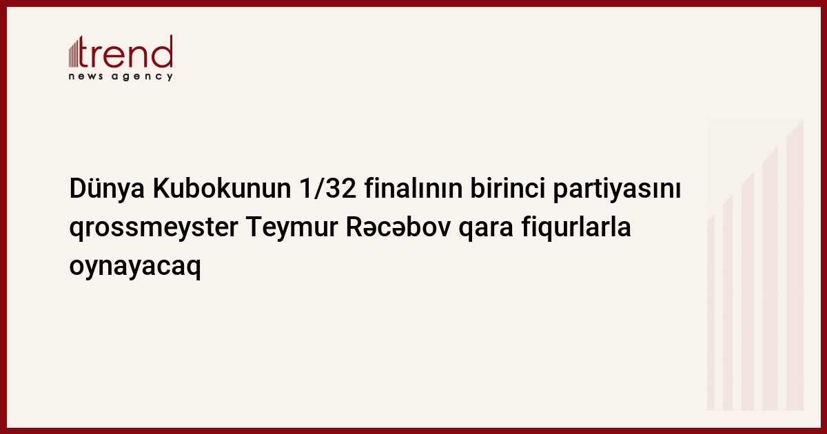 Azərbaycan, Bakı / Trend , müxbir Z.Səfərov/ Azərbaycanlı qrossmeyster Teymur Rəcəbov Dünya Kubokunun 1/32 finalının ilk oyununu qara fiqurlarla polyak Bartokomyu Maçeiyə qarşı oynayacaq. Yarışın reqlamentinə görə, 64/1 finalı bir rənglə oynayan şahmatçı növbəti raundda fiqurların rəngini dəyişməlidir. Əvvəlki raundda rusiyalı şahmatçı Vladimir Qenbeyə qarşı ağ fiqurlarla oynamış Teymur Maçei ilə oyunda ağ fiqurlarla ikinci partiyada oynayacaq. Eyni zamanda, Şəhriyar Məmmədyarov tay - brekdə kubalı Lazaro Bruzona qalib gəlmiş 2006 - cı il Avropa çempionu xorvat Zdenko Kozula qarşı qara rənglə oynayacaq. Bu səbəbdən, Məmmədyarovun istirahət üçün bir gün artıq vaxtı var idi və bu ona asan olmayan döyüşdə kömək etməlidir.