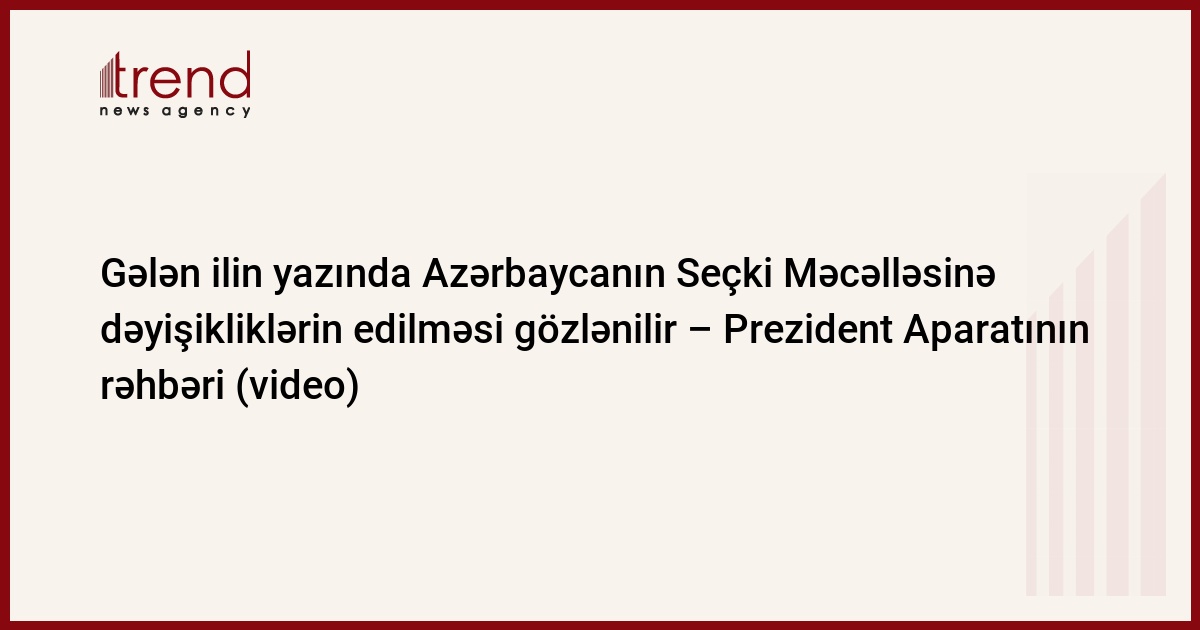 Azərbaycan, Bakı / Trend müxbir S.Ağayeva/ Gələn ilin yazında Azərbaycanın Seçki Məcəlləsinə dəyişikliklərin edilməsi gözlənilir. Bu barədə bazar ertəsi jurnalistlərə Azərbaycan Prezidenti İcra Aparatının rəhbəri Ramiz Mehdiyev məlumat verib.