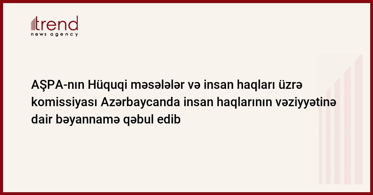 Azərbaycan, Bakı / Trend müxbir K.Ramazanova / AŞPA-nın Hüquqi məsələlər və insan haqları üzrə komissiyası Azərbaycanda insan haqlarının vəziyyətinə dair bəyannamə qəbul edib. Bu barədə cümə günü AŞPA-nın Monitorinq Komitəsinin Azərbaycan üzrə həmmərüzəçisi Andres Herkel telefonla Trend ə verdiyi müsahibəsində bildirib.