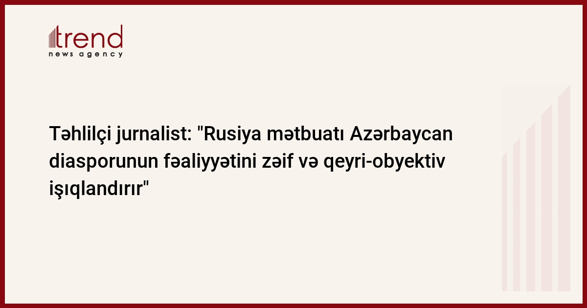 "Ümumilikdə isə Azərbaycan diasporunun fəaliyyəti Rusiya KİV-lərində çox zəif işıqlandırılır, adətən hansısa hadisələrin fonunda, yaxud aktual vəziyyət yarananda diasporumuz haqqında yazılar, informasyialar verilir" -deyə Həsənov bildirib.