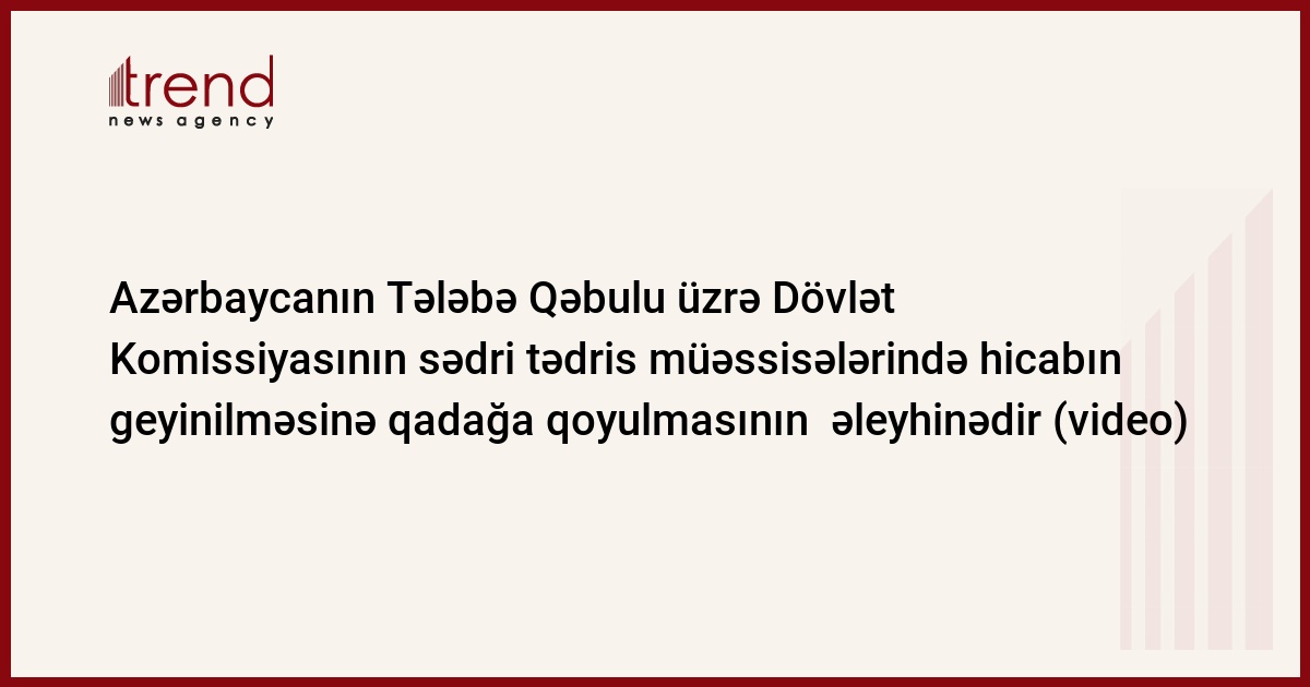 Parlamentin dekabrın 28-də keçiriləcək iclasında "Təhsil haqqında" qanun layihəsinin qəbul edilməsi planlaşdırılır. Qanun layihəsinin maddələrindən birində göstərilir ki, "Azərbaycanın tədris müəssisələrində tələbələrin, pedaqoqların və digər işçilərin baş örtüyü (hicab, çadra) və başqa dini geyimlər geyinməsinə icazə verilmir". Qanun layihəsi artıq Milli Məclisin Elm və təhsil məsələləri üzrə daimi komissiyasında birinci oxunuşdan keçib.