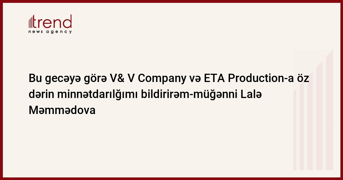 Müğənni Lalə Məmmədova: V& V Company və ETA Production-nın mənə bu hörmətinə görə minnətdaram. Mahnım onlar tərəfindən seçilib. V& V Company-nin obyektivliyinə şübhəm yoxdur. Sükanı belə saxlayın.