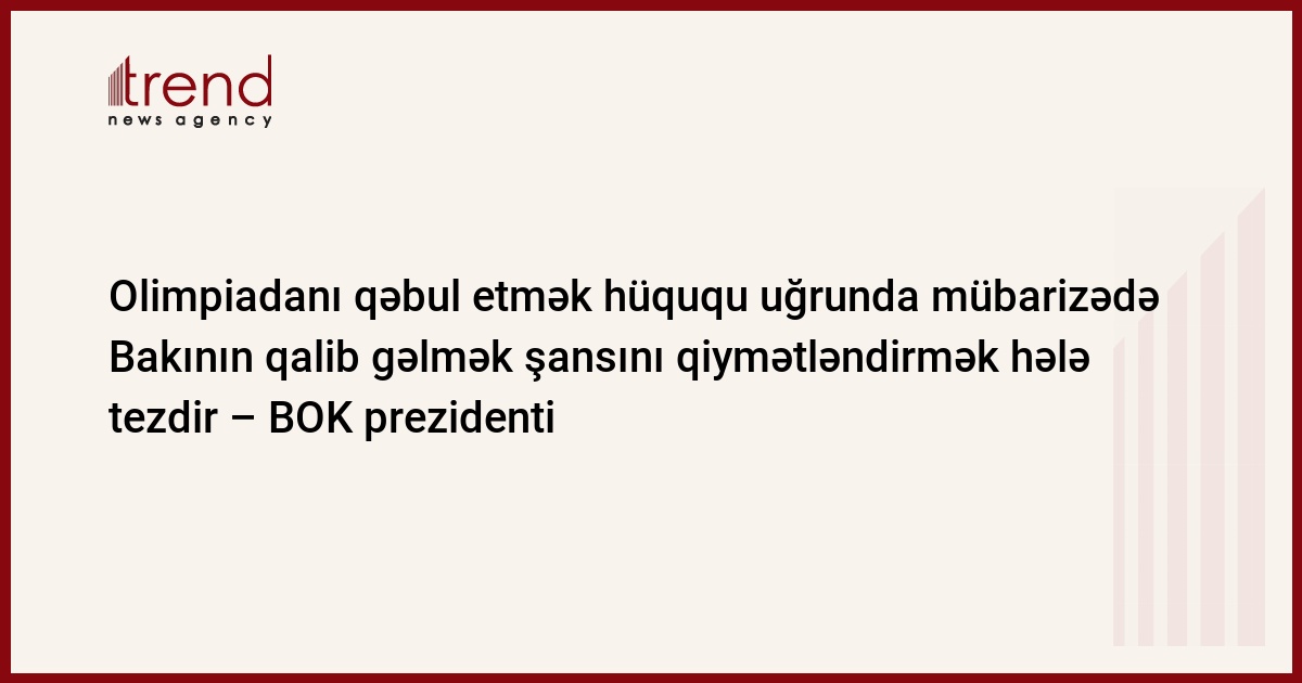 Azərbaycan, Bakı, 06 fevral / Trend , müxbir Z.Səfərov / Bakının Olimpiadanı qəbul etmək şansı haqqında danışmaq hələ tezdir. Bu barədə Beynəlxalq Olimpia Komitəsinin prezidenti Jak Roqqe Bakıda keçirilən mətbuat konfransının gedişatında deyib.