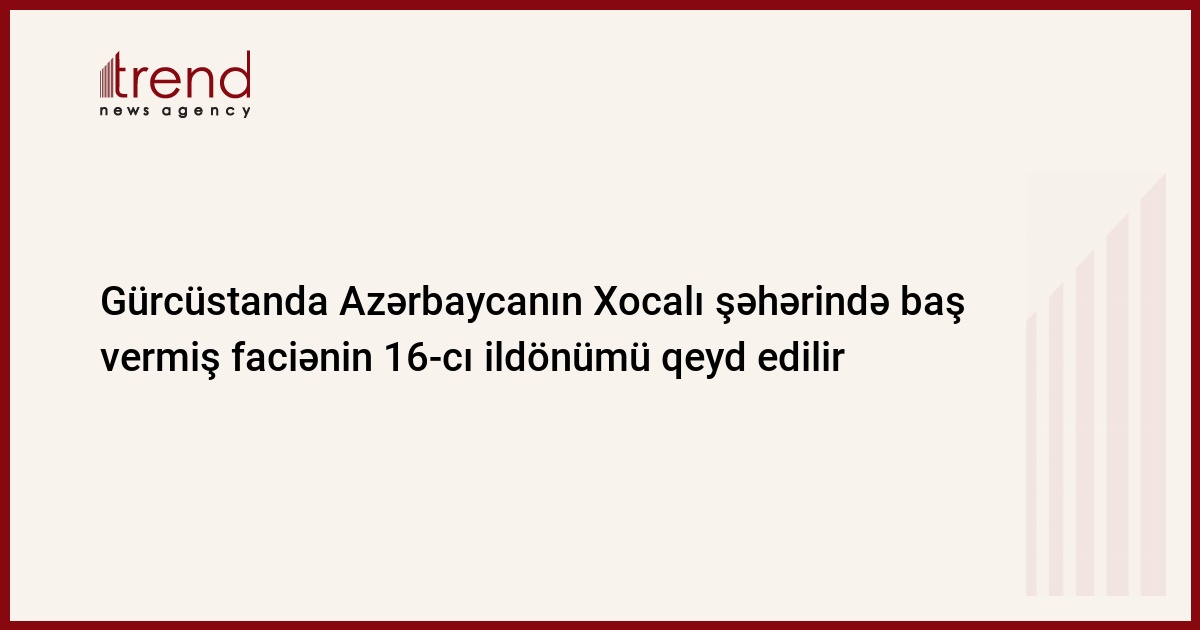 Gürcüstan, Tbilisi, 25 fevral/ " , müxbir N.Kirtsxalia/ Bu günGürcüstanın Marneuli rayonunda, Kvemo Kartli və Tbilisidə Xocalı şəhərində baş verən faciənin 16 illiyinə həsr olunmuş Anım tədbirləri keçirilir.