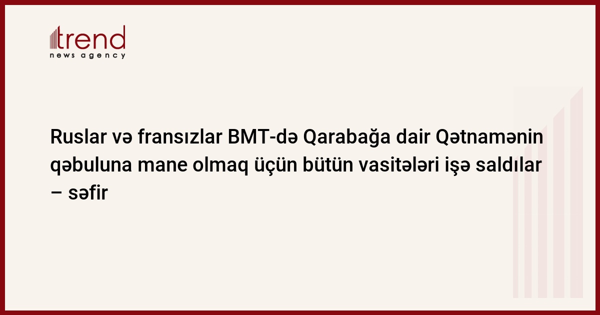 Əgər onlar Qətnamədə nəyisə bəyənməyiblərsə, öz mövqelərini bildirmək üçün müvafiq bəyanatlar edə bilərdilər və səsvermədə iştirak etməyə və ya ümumiyyətlə, səs verməyə bilərdilər. Lakin aydın şəkildə erməniyönlü mövqe tutmaq?! Burada onların müşavirləri açıqcasına canfəşanlıq etdilər. Bizdə olan məlumatlara görə, insaf naminə qeyd etmək lazımdır ki, amerikalılar son dəqiqələrə qədər onun əleyhinə səs vermək istəmirdilər və bu qərardan qaçmaq üçün imkan axtarırdılar, lakin ruslar və frnasızlar onlara "təzyiq" göstəriblər.