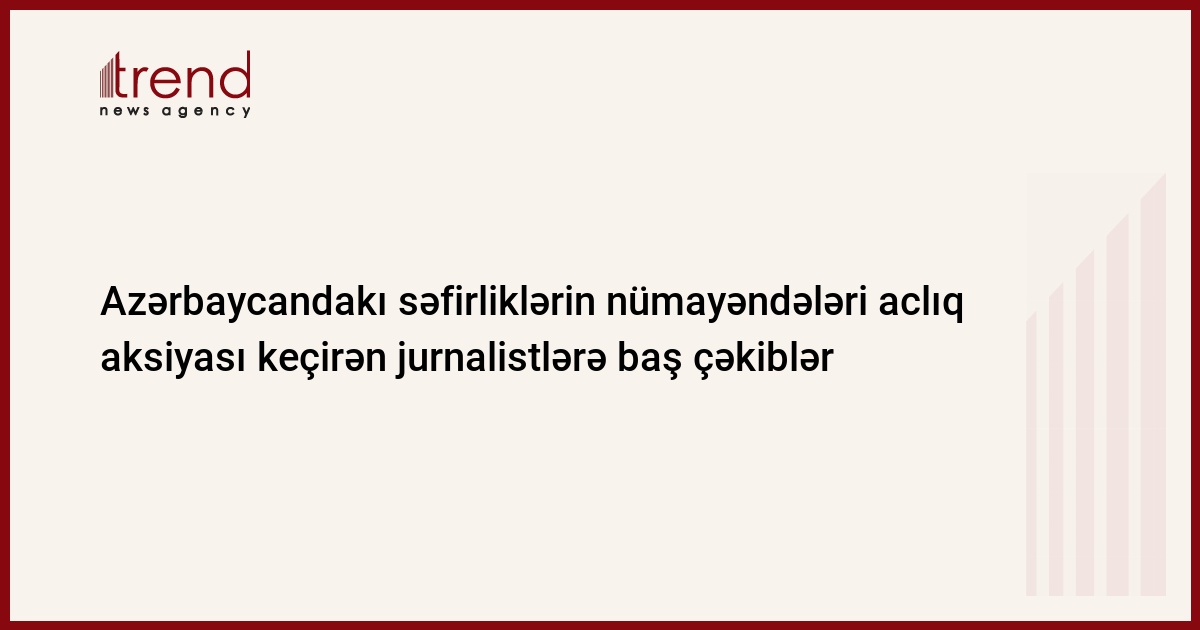 Azərbaycan, Bakı, 04 aprel/ Trend , müxbir K.Ramazanova/Fransa, Böyük Britaniya, Almaniya, İtaliya, Yunanıstanın Azərbaycandakı səfirliklərinin nümayəndələri cümə günü aclıq aksiyası keçirən Azərbaycan jurnalistlərinə baş çəkiblər. Səfirliklərin nümayəndələri Azərbaycanda KİV-in vəziyyəti ilə bağlı narahatlıq bildiriblər və öz hökumətlərini aclıq aksiyası haqqında məlumatlandıracaqlarını qeyd ediblər.