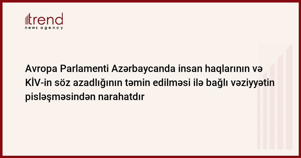 Azərbaycan, Bakı, 07 aprel / Trend müx. K.Ramazanova/ Avropa Parlamenti Azərbaycanda insan haqlarının və KİV-in söz azadlığının təmin edilməsi ilə bağlı vəziyyətin pisləşməsindən narahat olduğunu ifadə edib. Bu barədə bazar ertəsi Avropa Parlamentinin İnsan haqları və Xarici əlaqələr üzrə Komitəsinin üzvü Katrina Saks bildirib.