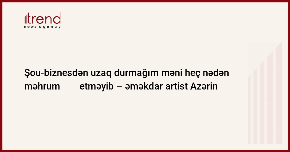 Həmsöhbətim bildirir ki, şou-biznesdən uzaq dayanmağı onu heç nədən məhrum etməyib. Müğənni əmindir ki, nəinki Azərbaycan, o cümlədən dünya