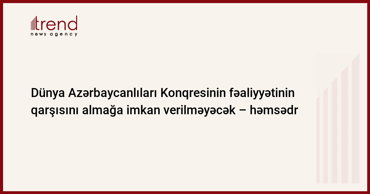 Azərbaycan, Bakı, 25 iyun/ Trend , müxbir C.Babayeva/ Dünya Azərbaycanlıları Konqresinin (DAK) həmsədri Sabir Rüstəmxanlı eyni adlı təşkilatın Brüsseldə keçirdiyi qurultayını "yığıncaq" adlandırıb və qeyri-legitim hesab edib. "Brüssel yığıncağında Avropadakı təmsilçilərimiz iştirak edib və onların bildirdiyinə görə, həmin tədbirə 35 nəfər qatılıb. Həmin tədbirdə DAK-a aidiyyatı olmayan şəxslər də iştirak edib", - deyə Rüstəmxanlı çərşənbə günü Bakıda keçirdiyi mətbuat konfransında bildirib.