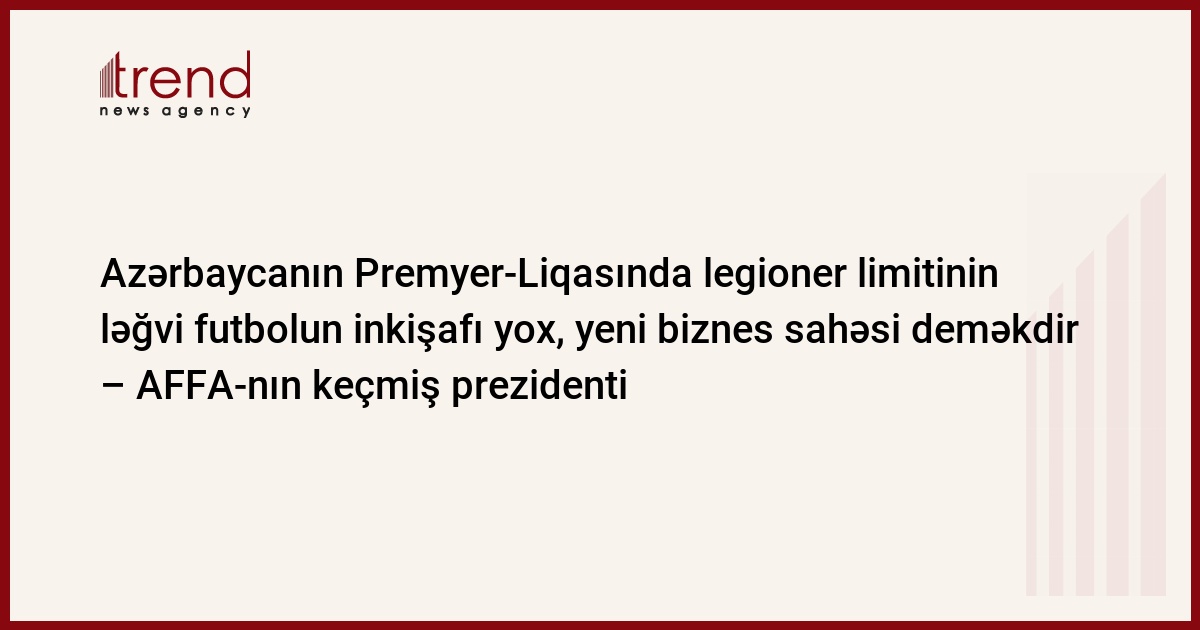 "Azərbaycanda legioner limitinin ləğvi inkişaf yox, yeni biznes sahəsi deməkdir. Bu, bizi uçuruma aparacaq", çərşənbə axşamı Trend -a AFFA-nın keçmiş prezidenti Fuad Musayev AFFA İcraiyyə Komitəsinin son qərarlarına münasibət bildirərkən deyib.