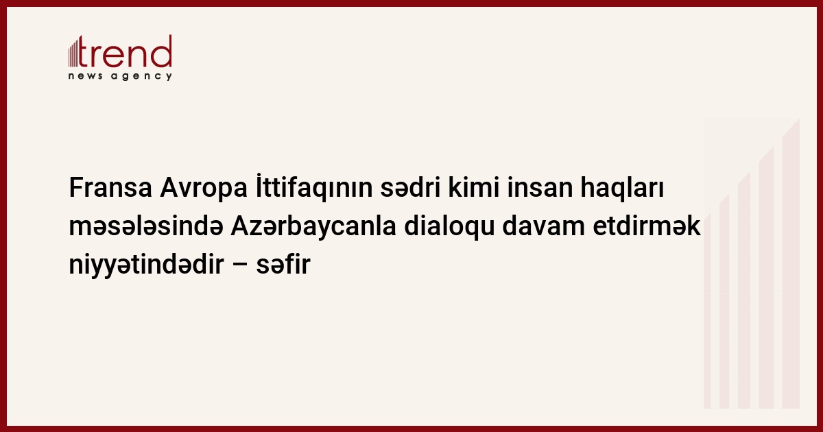 Azərbaycan, Bakı, 17 iyul/ Trend , müxbir R.Novruzov/ Fransa Avropa İttifaqının (Aİ) sədri kimi insan haqları məsələsində Azərbaycanla dialoqu davam etdirmək niyyətindədir