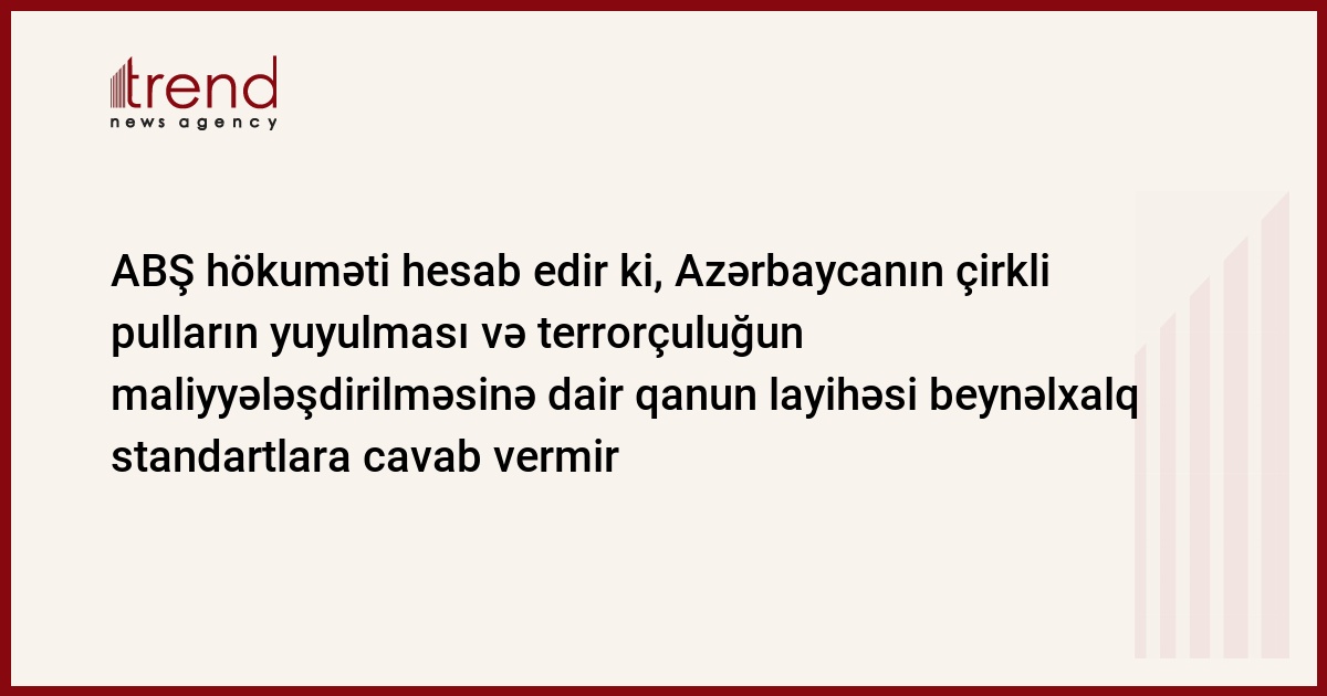 Azərbaycan, Bakı, 22 iyul / Trend , müxbir E.Babayev / Azərbaycan Milli Məclisində ilkin oxunuşda müzakirəyə çıxarılan "Cinayət yolu ilə əldə edilmiş pul vəsaitlərinin və ya digər əmlakın leqallaşdırılmasına və terrorçuluğun maliyyələşdirilməsinə qarşı mübarizə haqqında" qanun layihəsi beynəlxalq standartlara tam cavab vermir. "Əfsuslar olsun ki, hazırda bu qanun layihəsi onu, çirkli pulların yuyulmasına və terrorçuluğun maliyyələşdirilməsinə qarşı olan vahid və geniş qanuna çevirə bilən bütün elementləri əks etdirmir. Beynəlxalq standartlara yetərincə uyğun olması üçün bu qanun layihəsinin müəyyən hissələri nəzərdən keçirilməlidir", Trend -un məlumatına görə, bunu çərşənbə axşamı ABŞ-ın Azərbaycandakı səfiri Enn Dersi "Azərbaycanda çirkli pulların yuyulması və terrorçuluğun maliyyələşdirilməsinə qarşı mübarizə: əldə edilmiş dərslər və ən yaxşı təcrübələr" mövzusunda keçirilən seminarda bildirib.