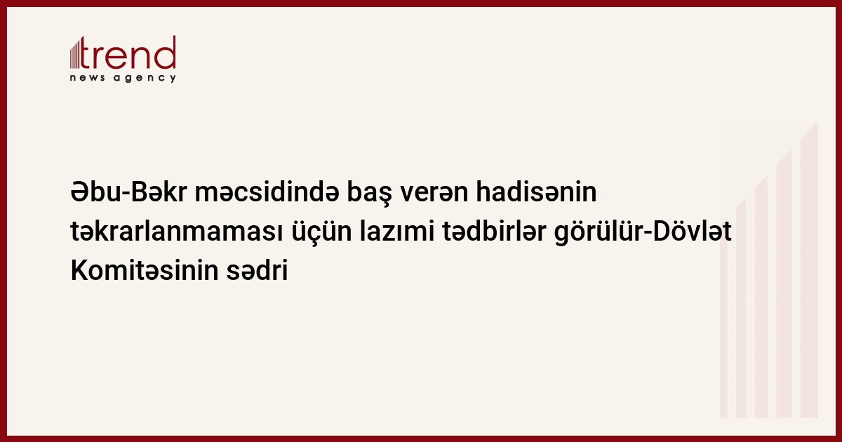 Azərbaycan, Bakı, 19 avqust / Trend , müxbir E.Hüseynli/ Azərbaycanın Dini Qurumlarla İş üzrə Dövlət Komitəsinin sədri Hidayət Orucov Əbu-Bəkr məcsidində baş verən olayla bağlı TREND İnformasiya Agentliyinə eksklüziv müsahibə verib.