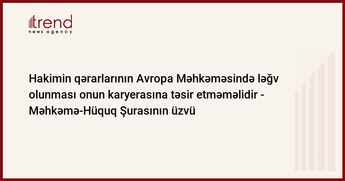 Azərbaycan, Bakı, 04 sentyabr / Trend , müxbir K.Zərbalıyeva/ Qəbul etdiyi qərarların İnsan haqları üzrə Avropa Məhkəməsində ləğv olunması hakimin karyerasına və hüquq ictimaiyyətindəki nüfuzuna təsir etməməlidir cümə axşamı jurnalistlərə açıqlamasında millət vəkili, Azərbaycan Məhkəmə-Hüquq Şurasının üzvü Əli Hüseynov bildirib.