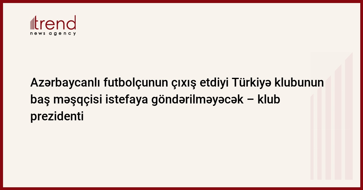 Azərbaycan, Bakı, 17 sentyabr / Trend , müxbir R.Ergün/ Azərbaycanlı futbolçu İlqar Qurbanovun çıxış etdiyi Türkiyənin "Boluspor" klubunun prezidenti Necib Çarıkçı komandanın baş məşqçisinin istefaya göndərilməsi haqda yaranan söz-söhbətə aydınlıq gətirib.