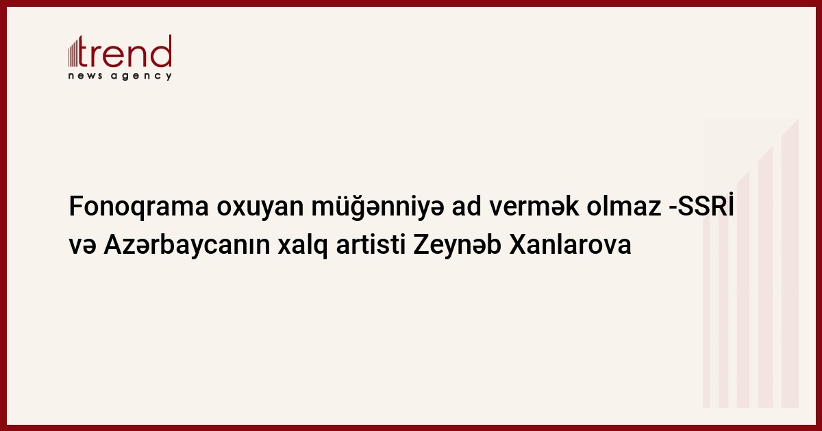 Azərbaycan, Bakı, 09 oktyabr/ Trend Life , müxbir Eldar Hüseynzadə/ Azərbaycan və SSRİ-nin xalq artisti Zeynəb Xanlarova hesab edir ki, Azərbaycanda "xalq və əməkdar artist" fəxri adlarının verilməsini ləğv etmək lazımdır.