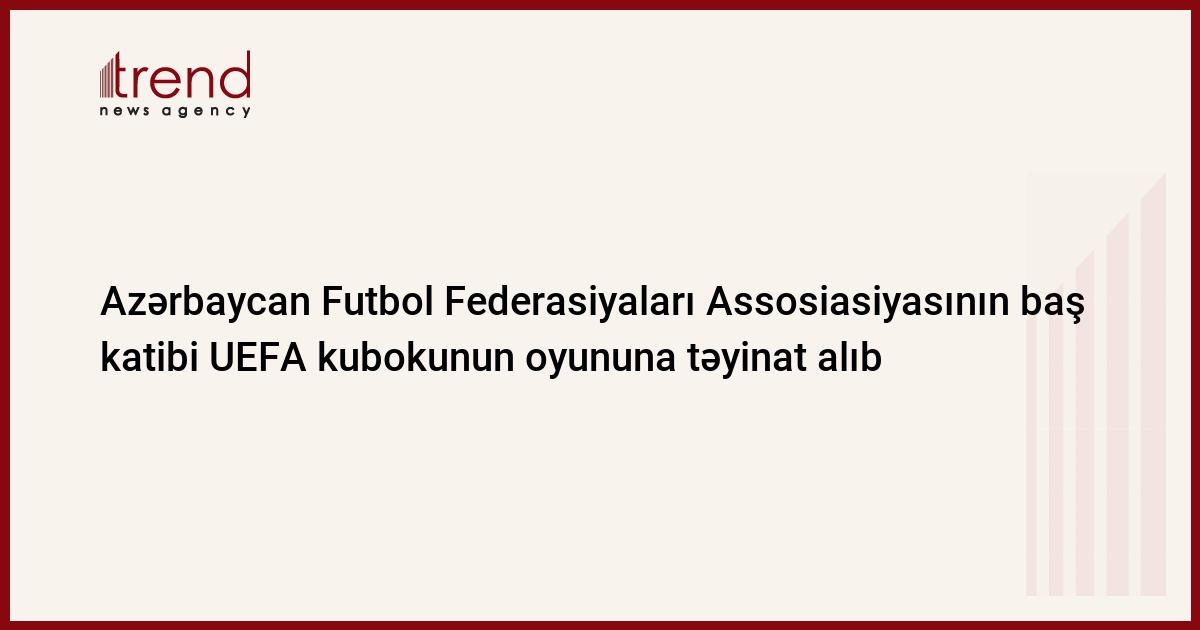 Azərbaycan, Bakı, 17 noyabr/ Trend , müxbir R.Ergün/ Azərbaycan Futbol Federasiyaları Assosiasiyasının (AFFA) baş katibi Elxan Məmmədov UEFA kubokunun oyununa təyinat alıb. Bu barədə Trend -a AFFA-nın mətbuat xidməti məlumat verib.