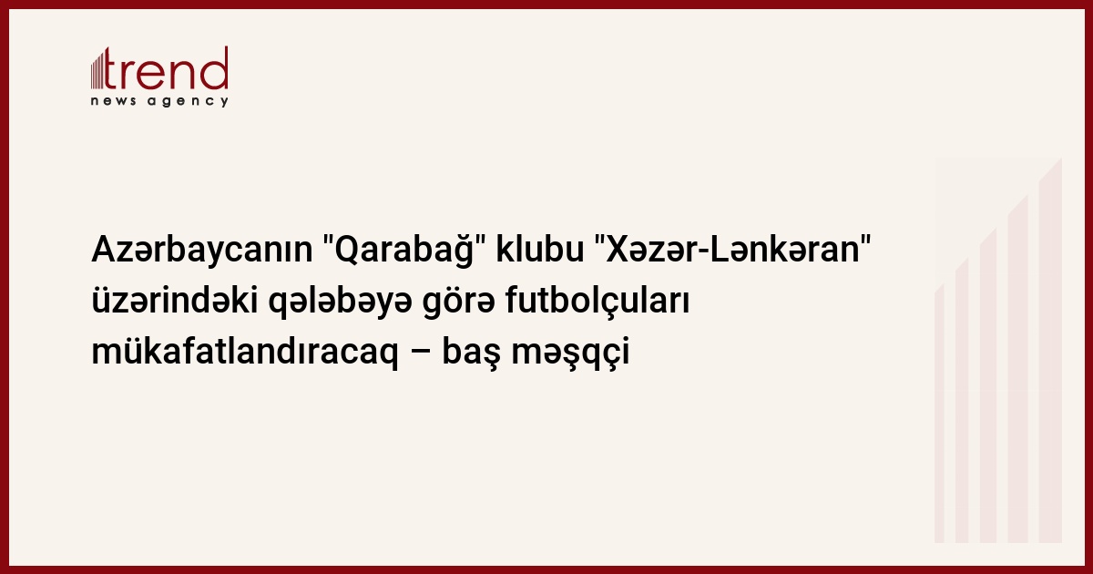 Azərbaycan, Bakı, 24 noyabr/ Trend , müxbir R.Ergün/ Azərbaycanın "Qarabağ" futbol klubunun rəhbərliyi "Xəzər - Lənkəran" üzrində qələbəyə görə futbolçuları və məşqçi heyətini mükafatlandıracaq.