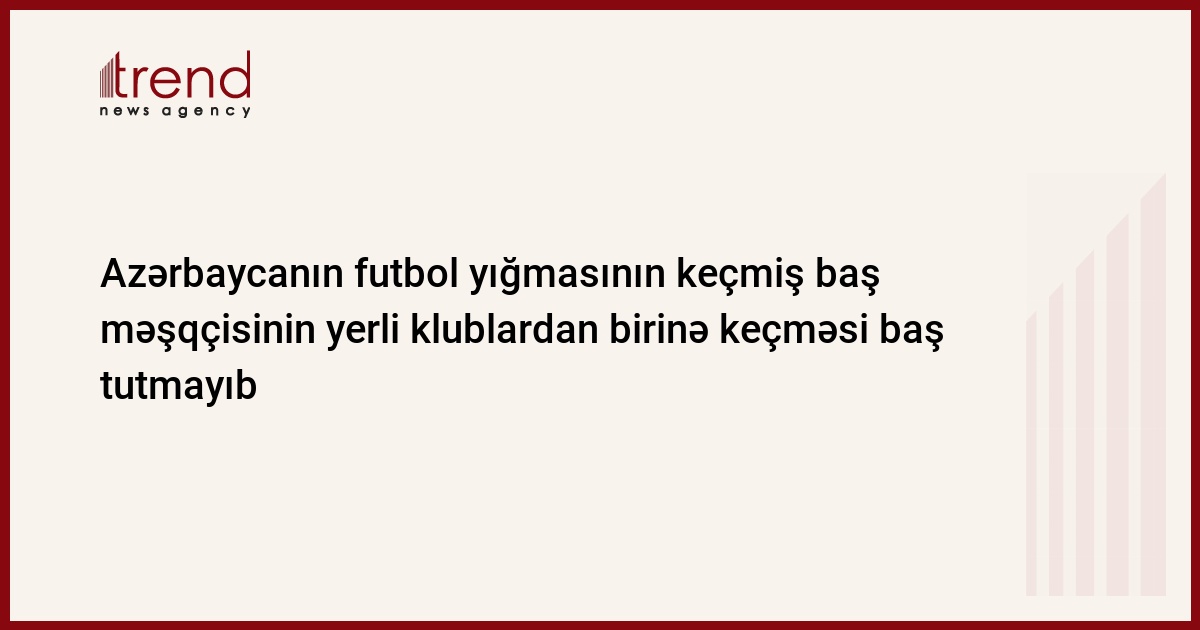 Azərbaycan, Bakı, 11 dekabr/ Trend , müxbir R.Ergün/ Futbol üzrə Azərbaycan yığma komandasının keçmiş baş məşqçisi Vaqif Sadıqovun yerli klublardan birinə keçməsi baş tutmayıb.