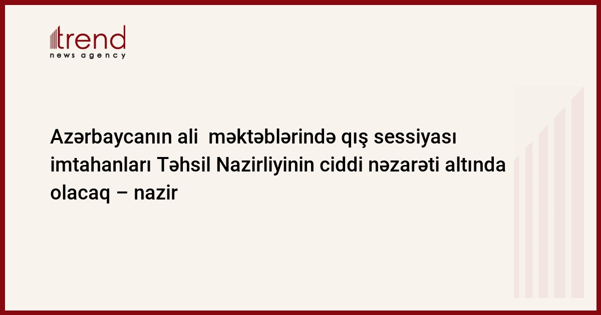 Azərbaycan, Bakı, 16 dekabr/ Trend , müxbir C.Babayeva/ Azərbaycanın ali təhsil məktəblərində (ATM) qış sessiyası imtahanlarına Təhsil Nazirliyi ciddi nəzarət edəcək.