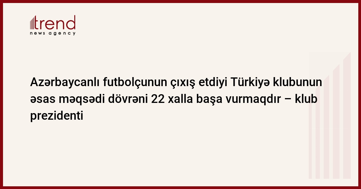 Azərbaycan, Bakı, 19 dekabr/ Trend , müxbir R.Ergün/ Azərbaycanlı futbolçu İlqar Qurbanovun çıxış etdiyi Türkiyənin "Boluspor" klubunun prezidenti Necip Çarıkçı birinci dövrəni 22 xalla başa vurmaq istədiklərini bildirib.