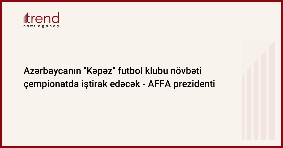 Azərbaycan, Bakı, 23 dекаbr/ Trend , müxbir R.Ergün/ Azərbaycanın "Kəpəz" futbol klubu növbəti mövsümdən çempionatda iştirak edəcək.