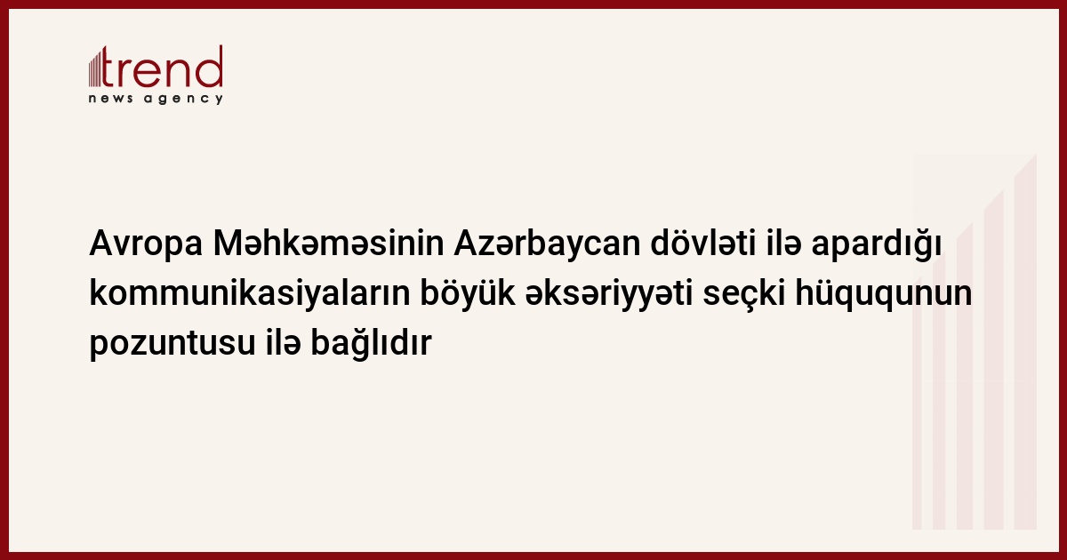 Azərbaycan, Bakı, 08 yanvar / Trend , müxbir K. Zərbalıyeva/İnsan Haqları üzrə Avropa Məhkəməsi Azərbaycan dövləti ilə 44 iş üzrə kommunikasiya aparır.