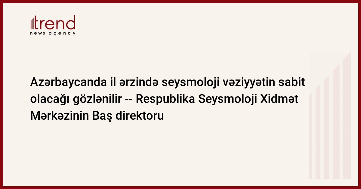 Azərbaycan, Bakı, 21 yanvar / Trend , müxbir V.Məmmədova/ Azərbaycanda il ərzində seysmoloji vəziyyətin sabit olacağı gözlənilir, -- bu barədə çərşənbə günü Trend -a Azərbaycan Milli Elmlər Akademiyası (AMEA) Respublika Seysmoloji Xidmət Mərkəzinin Baş direktoru Qurban Yetirmişli məlumat verib.