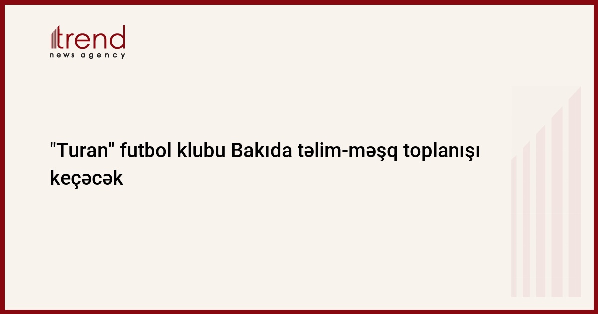 Azərbaycan, Bakı, 30 yanvar/ Trend , müxbir R.Ergün/ Azərbaycanın "Turan" futbol klubu Premyer-Liqanın ikinci dövrəsinə hazırlaşmaq üçün Bakıda təlim-məşq toplanışı keçəcək. Bu barədə cümə günü Trend -a klubun mətbuat xidməti məlumat verib.