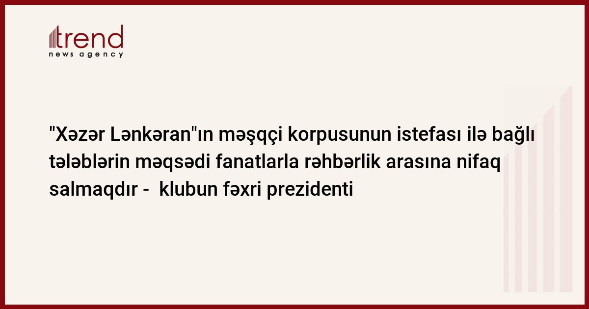 Azərbaycan, Bakı, 6 may / Trend / Son günlər bəzi qrupların klubun rəhbərliyi ilə məşqçiləri istefaya göndərmək kimi tələblərin məqsədi fanatlarımızla rəhbərlik arasına nifaq salmaqdır. Belə bir bəyanatla İstanbuldan Palmali Şirkətlər Qrupunun prezidenti, ''Xəzər Lənkəran'' futbol klubunun fəxri prezidenti Mübariz Mənsimov çıxış edib. Bu haqda klubun rəsmi saytında yerləşdirilən məlumatda bildirilir.