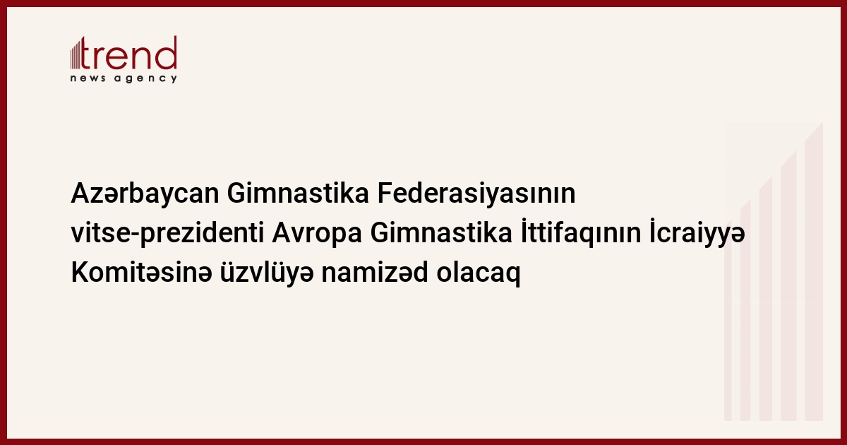 Azərbaycan Gimnastika Federasiyasının vitse-prezidenti Avropa Gimnastika İttifaqının (UEG) İcraiyyə Komitəsinə üzvlüyə namizəd olacaq. Üzvlük üzrə seçkilər cari ilin noyabrında keçiriləcək. Bu barədə cümə axşamı keçirilən mətbuat konfransında UEG rəhbəri Dimitrios Dimitropoulos bildirib.