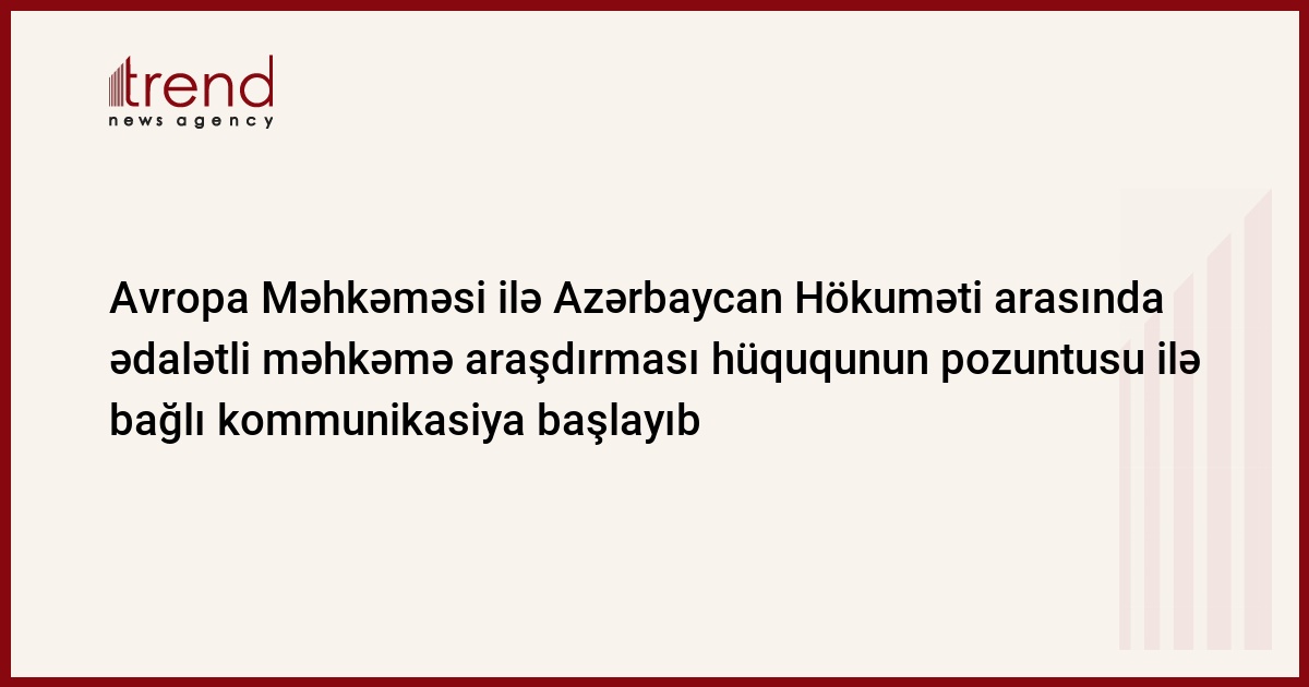 Avropa İnsan Hüquqları Məhkəməsi ilə Azərbaycan Hökuməti arasında ədalətli məhkəmə araşdırması hüququnun pozuntusu ilə bağlı kommunikasiya başlayıb.