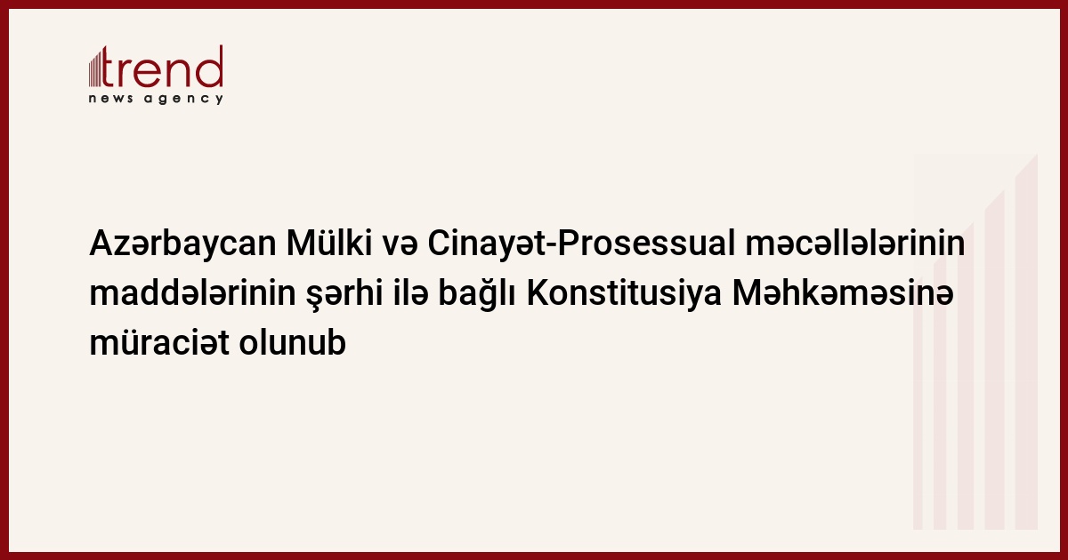 Bakının Nəsimi rayon məhkəməsi Mülki Məcəllənin və Cinayət-Prosessual Məcəllənin maddələrinin şərhi ilə bağlı Konstitusiya Məhkəməsinə müraciət edib.