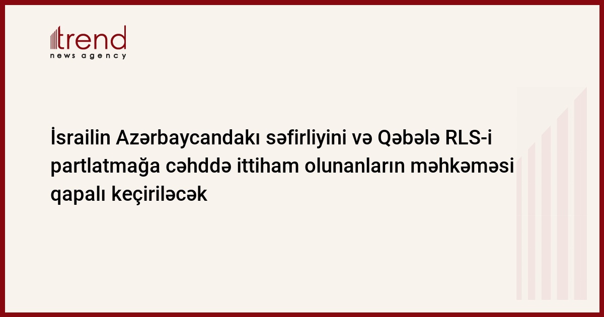 İsrailin Azərbaycandakı səfirliyini və Qəbələ RLS-i partlatmağa cəhddə ittiham olunanların işi ilə bağlı bu gün Ağır Cinayətlərə dair İşlər üzrə Məhkəmədə hazırlıq iclası davam etdirilib.
