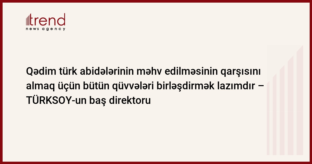 Qədim türk abidələrinin məhv edilməsinin qarşısını almaq üçün bütün qüvvələrimizi birləşdirməliyik, TÜRKSOY-un baş direktoru Düsen Kaseinov cümə günü Trend -a deyib.