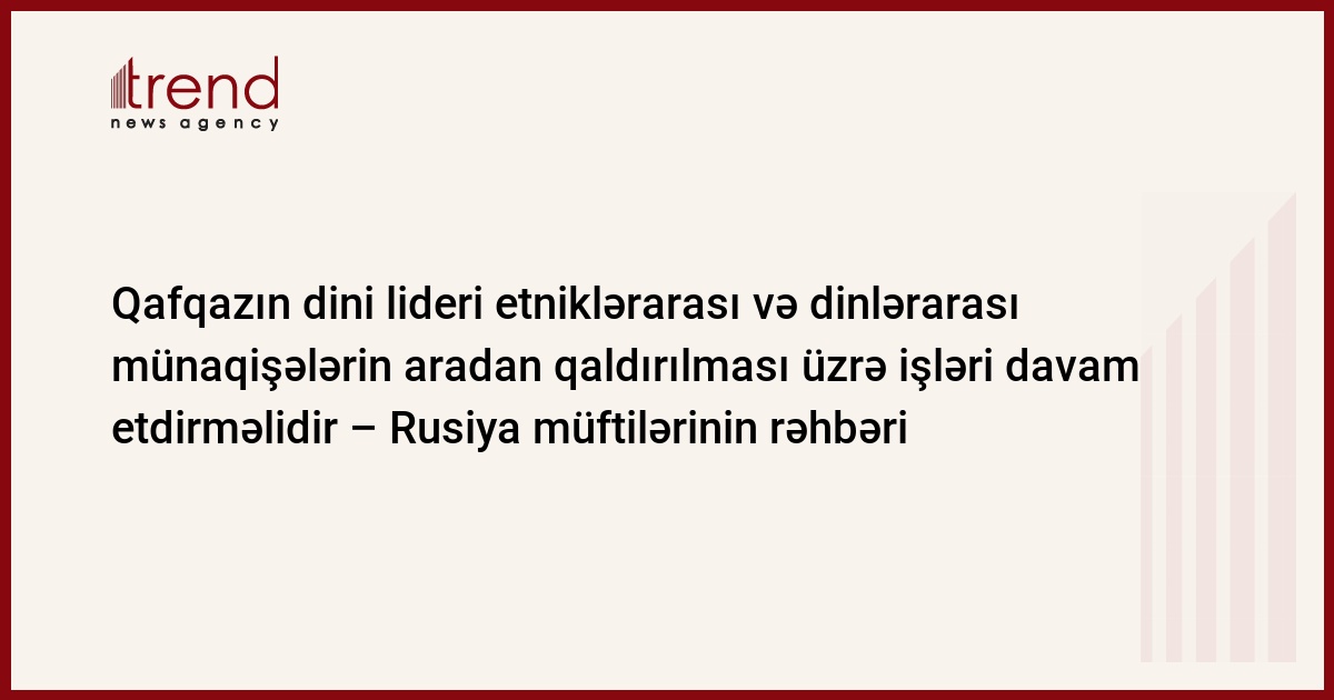Qafqazın dini lideri etniklərarası və dinlərarası beynəlxalq münaqişələrin aradan qaldırılması üzrə işləri gələcəkdə də davam etdirməlidir. Rusiya Müftilər Şurasının sədri Ravil Qaynutdin belə hesab edir.