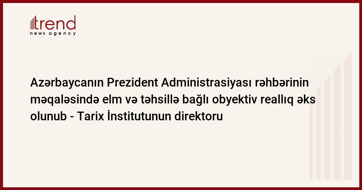 Azərbaycan Milli Elmlər Akademiyasının Tarix İnstitutunun direktoru hesab edir ki, Prezident Administrasiyası rəhbərinin məqaləsində elm və təhsillə bağlı obyektiv reallıq əks olunub.