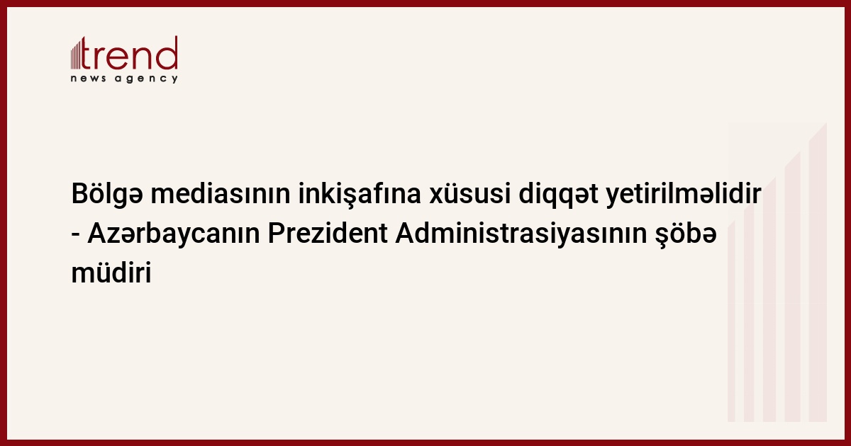Azərbaycanın Prezident Administrasiyasının şöbə müdiri hesab edir ki, bölgə mediasının inkişafına xüsusi diqqət yetirilməlidir.
