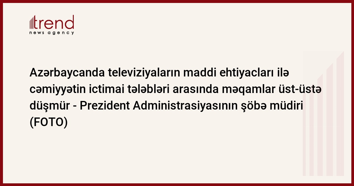 Azərbaycan Prezident Administrasiyasının şöbə müdiri hesab edir ki, gələcək nəsilləri sağlam, milli mənəvi dəyərlərlə zəngin görmək üçün efirə cəmiyyətin ən nümunəvi insanları gətirilməlidir.