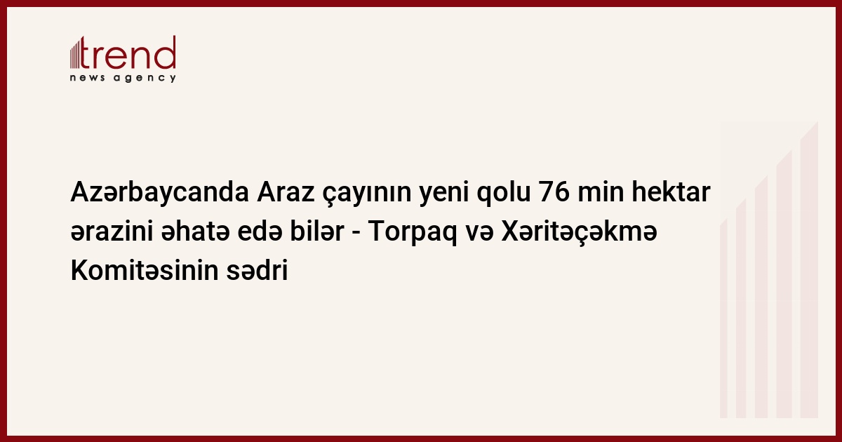 Araz çayının hövzəsində müasir tələblərə cavab verən kanal qazılacaq, - bu barədə hakim Yeni Azərbaycan Partiyasının rəsmi saytına müsahibəsində Dövlət Torpaq və Xəritəçəkmə Komitəsinin sədri Qərib Məmmədov bildirib.