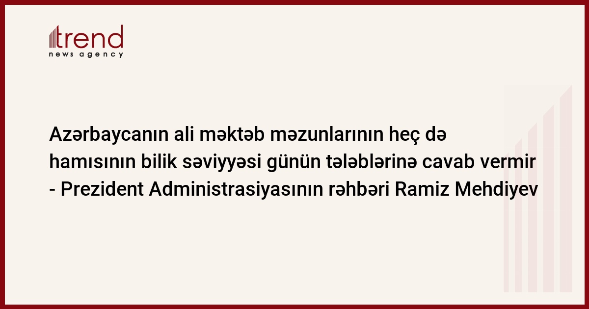 Müşavirəyə yekun vuran Ramiz Mehdiyev rektorların diqqətini təhsillə bağlı bir neçə problemə cəlb edərək qeyd etmişdir ki, Azərbaycan bu gün ən dinamik inkişaf edən ölkələrdən biri olmaqla, yüksək ixtisaslı mütəxəssislərə böyük ehtiyac duyur. Lakin dövlət qulluğuna qəbul olunmaq üçün verilən imtahanlar, eləcə də müvafiq şirkətlərin keçirdiyi sınaqlar ali məktəb məzunlarının heç də hamısının bilik səviyyəsinin günün tələblərinə cavab vermədiyini göstərir. Bütün bu problemlər ali məktəblərin fəaliyyətində mövcud olan qüsurlardan xəbər verir. Təhsillə bağlı hər bir insanı belə bir cəhət də narahat edir ki, kadr korpusu sürətlə qocalmaqdadır, onları əvəz etmək üçün Avropa təhsil standartlarını ölkəmizdə bərqərar etməyə qadir olan gənc kadrlar isə kifayət qədər deyildir.
