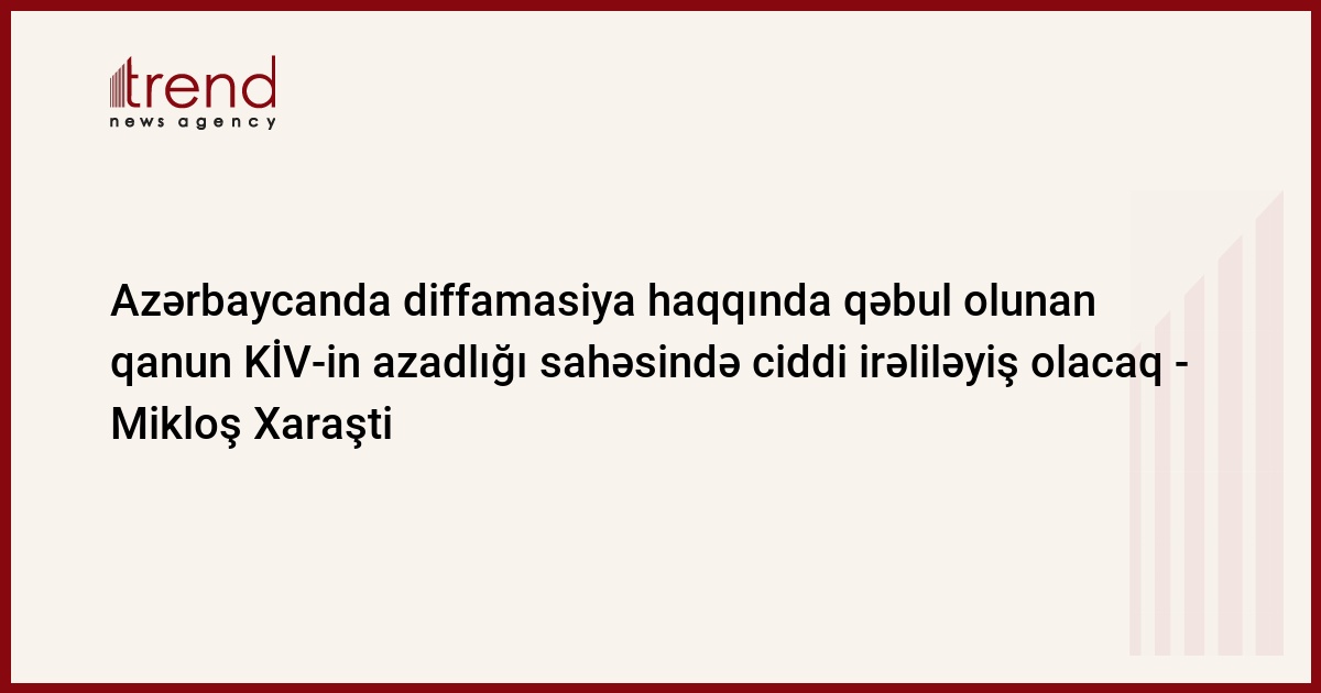 Azərbaycanda diffamasiya haqqında qəbul olunmuş qanun mətbuat azadlığı sahəsində ciddi irəliləyişlərə çevriləcək, - ATƏT-in KİV-in azadlığı üzrə keçmiş nümayəndəsi Mikloş Xaraşti çərşənbə günü Bakıda "Yeni mətbuat erasının dəyərləri" adlı konfrans-seminarın açılışında deyib.