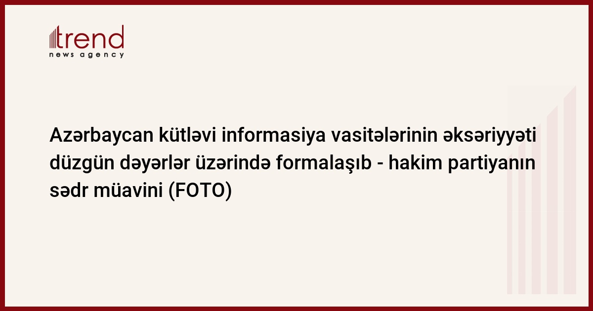 Azərbaycanın hakim partiyasının sədr müavini bildirib ki, kütləvi informasiya vasitələri təkcə informasiya ötürməklə deyil, cəmiyyətin səmərəli şəkildə fəaliyyət göstərməsinə də yönəlib.