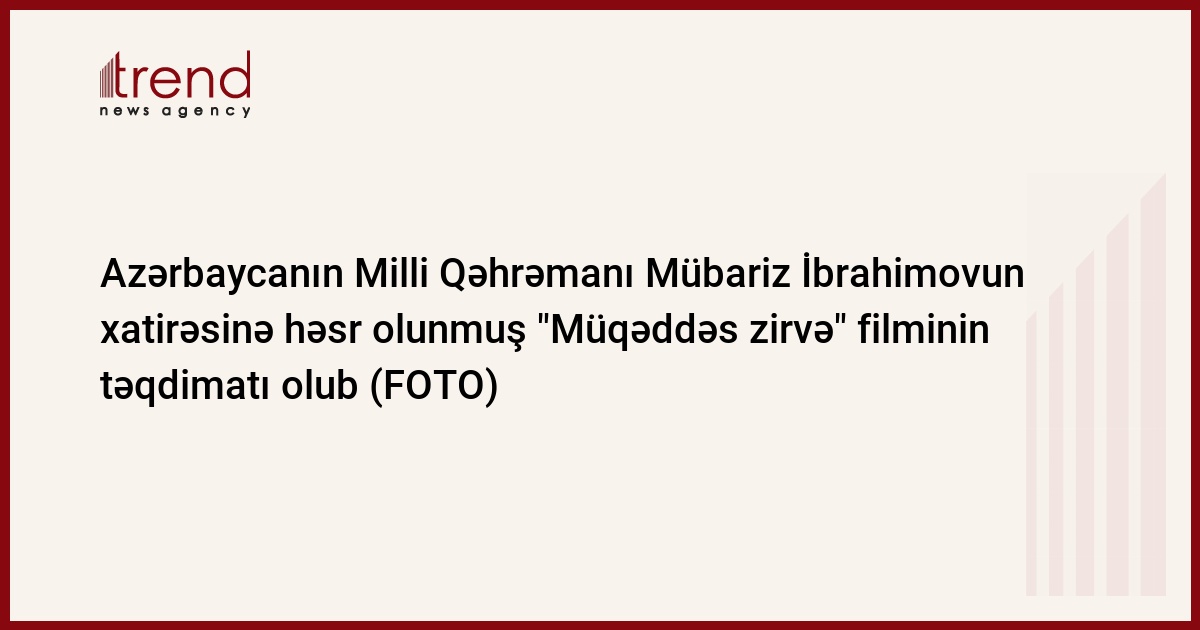 Azərbaycanın Milli Qəhrəmanı Mübariz İbrahimovun xatirəsinə həsr olunmuş "Müqəddəs zirvə" adlı sənədli filmin təqdimatı olub. Trend-in məlumatına görə, çərşənbə günü təqdimatı keçirilən film millət vəkili Qənirə Paşayevanın və Avrasiya Beynəlxalq Araşdırmalar İnstitutu İctimai Birliyinin dəstəyi ilə çəkilib. Filmin rejissoru Etibar Məmmədov, redaktoru Günel Paşayeva, baş məsləhətçisi isə Qənirə Paşayevadır.