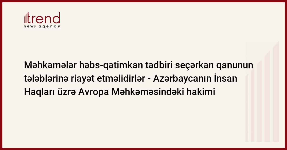 Azərbaycan məhkəmələri həbs-qətimkan tədbiri seçərkən qanunun tələblərinə riayət etməlidirlər. Bunu cümə günü Bakıda Trend-ə Azərbaycanın İnsan Haqları üzrə Avropa Məhkəməsindəki hakimi Xanlar Hacıyev bildirib.