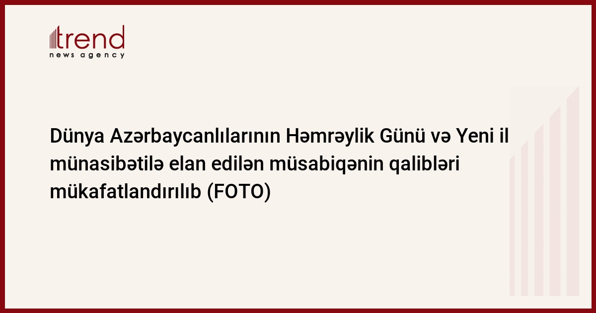 Azərbaycan Prezidenti yanında Kütləvi İnformasiya Vasitələrinin İnkişafına Dövlət Dəstəyi Fondunun (KİVDF) Dünya Azərbaycanlılarının Həmrəylik Günü və Yeni ili münasibətilə elan etdiyi fərdi jurnalist yazıları müsabiqəsinin qaliblərinin mükafatlandırılması mərasimi keçirilib. Bu barədə Fondun cümə axşamı yaydığı məlumatda deyilir.