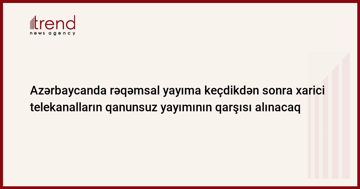 Azərbaycan Milli Televiziya və Radio Şurası bildirib ki, ölkədə rəqəmsal yayıma keçdikdən sonra xarici telekanalların ölkədə yayımının qarşısı alınacaq.