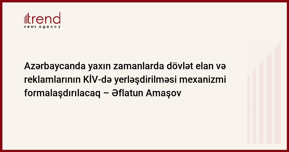 Yaxın zamanlarda dövlət elan və reklamlarının KİV-də, xüsusən də çap mediasında yerləşdirilməsi mexanizmi formalaşdırılacaq. Trend-in Mətbuat Şurasına istinadən verdiyi məlumata görə, bu barədə Azərbaycan MŞ-nin sədri Əflatun Amaşov Beynəlxalq Media Müdafiə Təşkilatının (İnternational Media Support - İMS) böyük müşaviri Henrik Keit Hansenlə çərşənbə axşamı keçirdiyi görüşdə deyib.